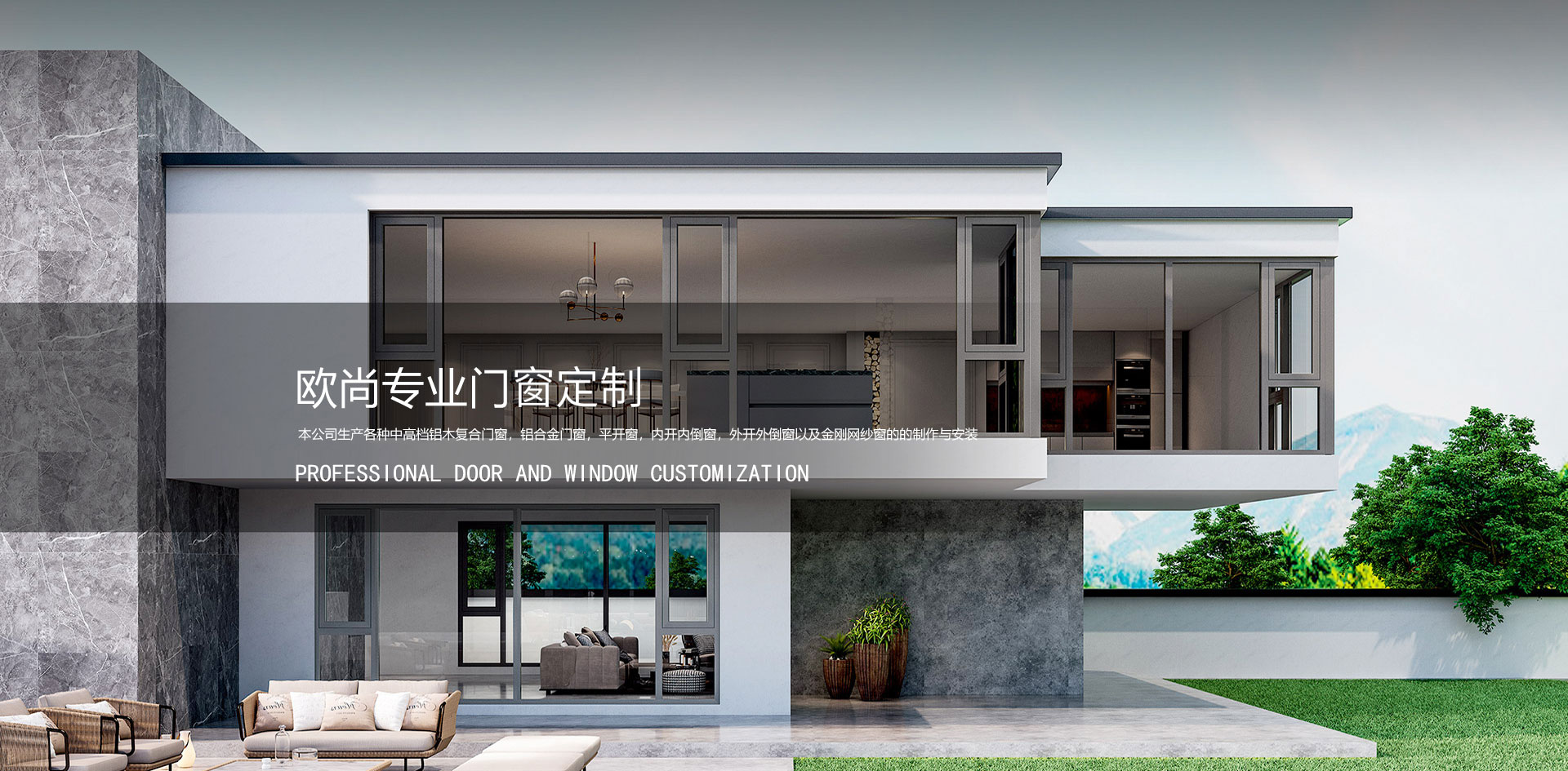 本公司生產各種中高檔鋁木復合門窗,鋁合金門窗,平開窗,內開內倒窗,外開外倒窗以及金剛網紗窗的的制作與安裝。經過不斷的改善和創新,設計出優良的產品品質,優雅的產品風格,出色的搭配效果獲得了供不應求的大好市場,贏得了廣大小區業主、別墅區業主的青睞和首肯。